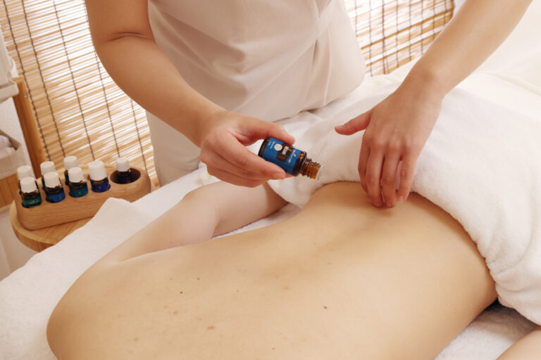 レインドロップは、背骨を中心に高品質なエッセンシャルオイルを“雨雫”のように垂らし、やさしいタッチで全身へと馴染ませていくヒーリングトリートメントです。