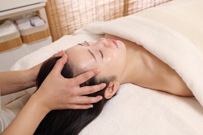 脳洗浄は頭部を中心に全身へとつながる独自のメソッド。やさしいタッチで緊張を緩め、自律神経の乱れや思考の疲れに働きかけます。